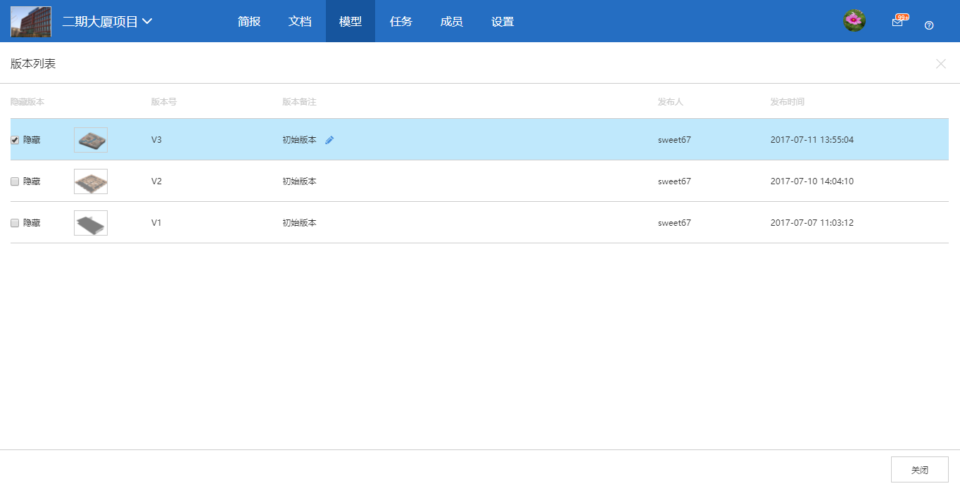 1.13 优化当隐藏最新版本后,返回模型界面自动切换到未隐藏的最新的版本。